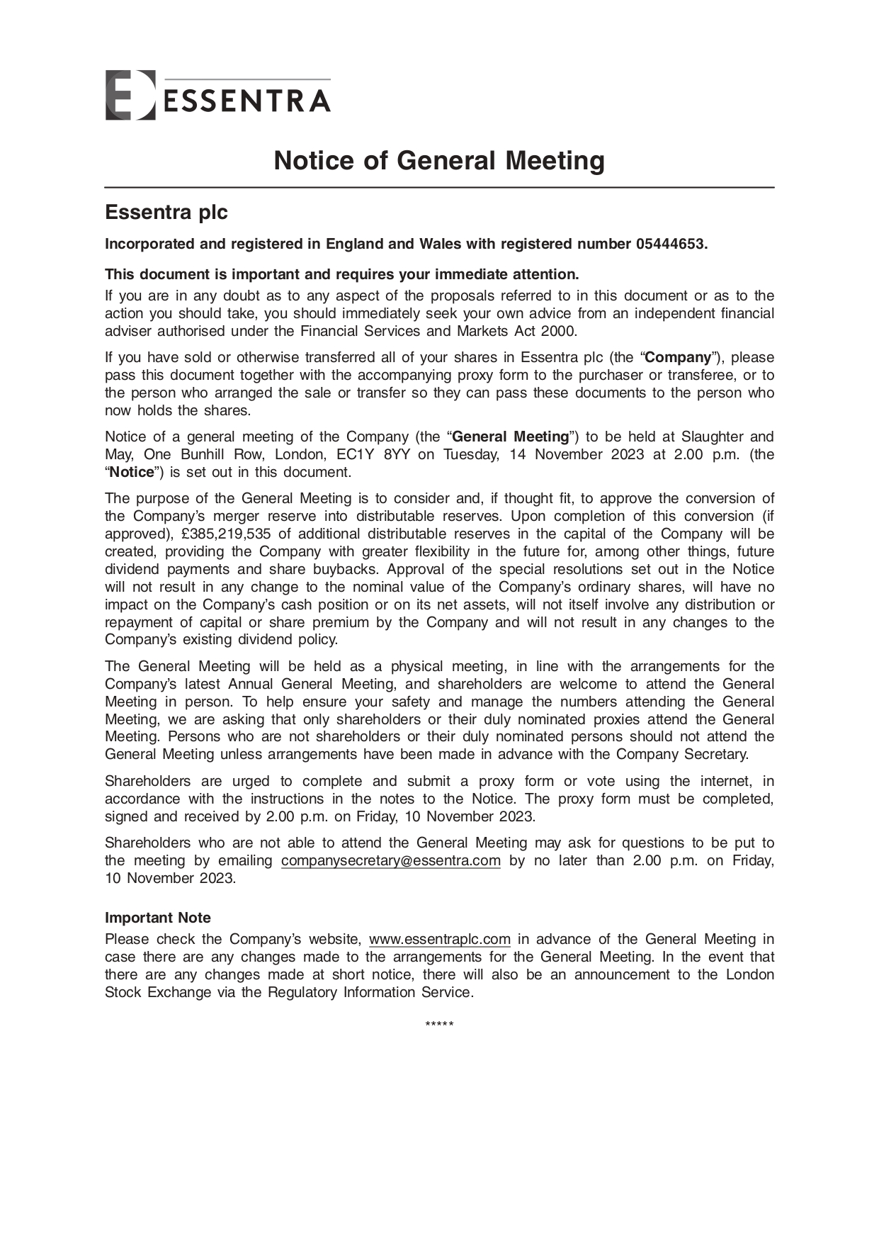 2023 GM Notice for Merger Reserve Relief 0.12MB